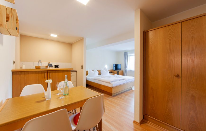 ☀️ Ein kleines, aber feines Appartement für bis zu 3 Personen. Auf der gemütlichen Schlafcouch kann die 3. Person problemlos nächtigen, der Wohnbereich mit Küchenzeile bietet alles, was ihr für euren Urlaub in der Eifel braucht. Rein praktisch kann auch ein Baby als 4. Person kostenfrei bis zum 4. Geburtstag im Babybett (einmalige Leihgebühr von 10€) nächtigen.
