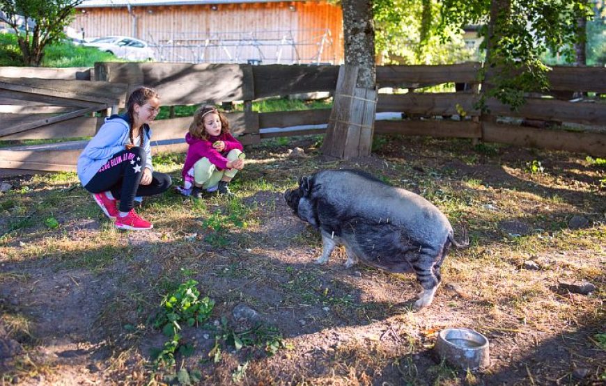 Der Hof Stallegg ist ein ehemaliger herrschaftlicher Gutshof inmitten der schönsten Idylle des Hochschwarzwaldes und bietet die perfekte Voraussetzung für einen entspannten Familienurlaub im Schwarzwald. Hier erwartet euch vollkommene Ruhe ohne Autoverkehr, sodass ihr nachts dem Zirpen der Grillen lauschen könnt, um am nächsten Morgen in einen aufregenden Urlaubstag zu starten. Ihr habt die Wahl: Wollt ihr das Naturschutzgebiet Wutachschlucht entdecken, den Titisee erleben, oder doch lieber einen ruhigen, aber nicht weniger ereignisreichen Tag auf dem Hof verbringen? So ist der Spielplatz unter schattenspendenden Bäumen mit allem, was das Kinderherz begehrt, Kettcars, Spielhaus und Trampolin nur der Anfang… Für große und kleine Tierfreunde gibt’s einen Streichelzoo und Ziegen, Schafe, Alpakas und Pferde freuen sich auch über euren Besuch.
