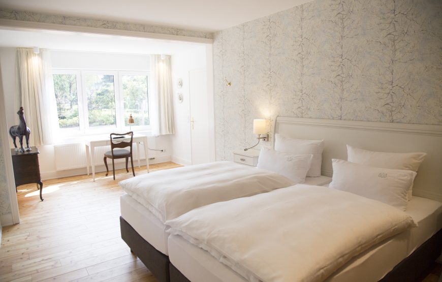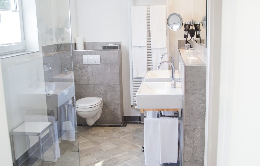 Die Ferienwohnung Franz Anton liegt in einem wunderschön restaurierten Gutshaus von 1878. Das Bruderhaus liegt etwa 150 vom Hotel entfernt und bietet auf 100 qm bis zu 4 Personen Platz – ein weiteres Kinderbett ist möglich. Die große Ferienwohnung ist nicht nur ein echtes Raumwunder, sondern begeistert ihre Gäste auch mit einer Süd-Terrasse mit direktem Zugang zum Garten. Ideal also für Kinder, die viel Auslauf benötigen. Die moderne Küche und das Wohlfühlambiente sorgen für gemütliche Kochabende.