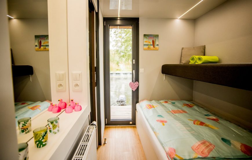 ☀️ Alle Skipper und erfahrenere Bootsfreunde aufgepasst: Euer Familienurlaub im Havelgebiet bzw. auf der Mecklenburgischen Seenplatte wird durch dieses Komfort-Hausboot perfekt. Nicht nur das Design ist zum Verlieben: Auf 27 qm Grundfläche erwarten euch ein sehr hübsch gestalteter Wohn-Essbereich mit ausziehbarer Couch, ein Schlafgemach für 2 Personen mit möglicher Aufbettung für ein Kind, ein vollausgestattetes Badezimmer und als Highlight neben der hübschen Bugterrasse ein wunderbares Sonnendeck mit 2 Liegen für euren Ausblick in alle Himmelsrichtungen. So könnt ihr die Schönheit der Havel voll und ganz genießen. Zu 3. bzw. 5 (durch das Schlafsofa) erlebt ihr hier eure besondere Auszeit im Kreise der Familie.