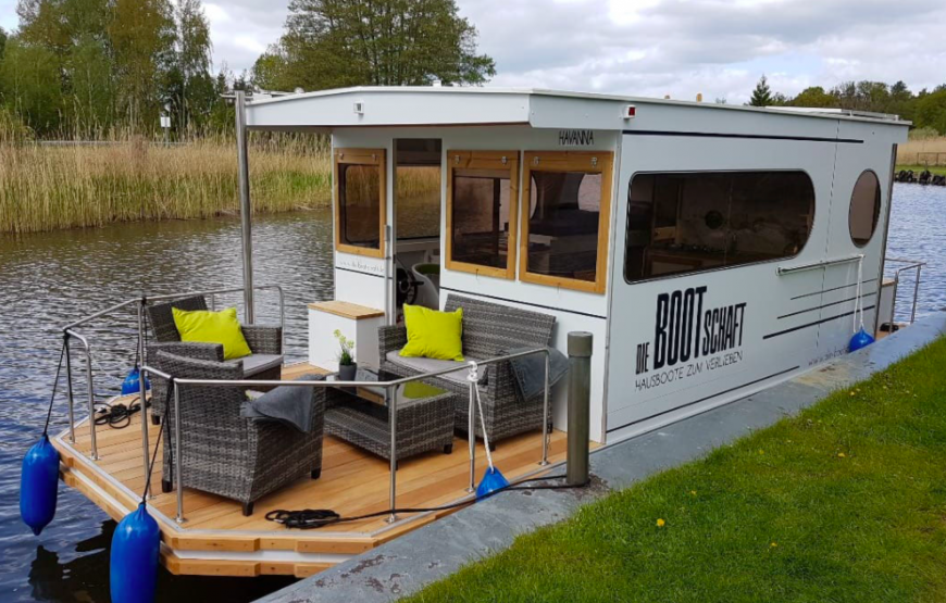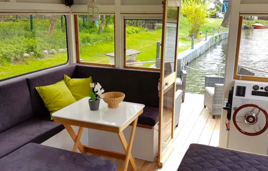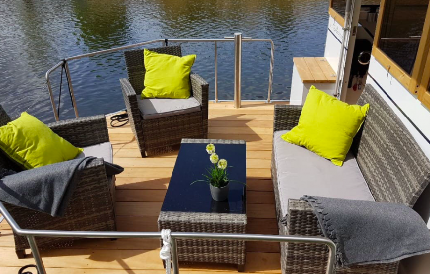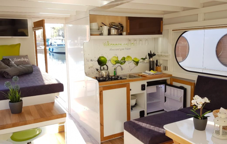 Entdeckt die idyllische Havellandschaft auf dem gemütlichen, familienfreundlichen Hausboot für 4 Personen. Das beste daran? Für dieses Boot benötigt ihr keinen Führerschein, sondern könnt nach einer Einweisung in die Bedienfunktion sofort in euer Abenteuer z. B. auf der Mecklenburgischen Seenplatte starten. Neben den festen Stockbetten lässt sich die Sitzecke schnell zu einem Doppelbett umbauen, sodass hier auch bequem eine Familie mit 2 Kindern Platz findet. Die gemütliche Bugterrasse bietet das perfekte Ambiente, um mit der Familie in den Sonnenuntergang zu schippern. Aber auch bei schlechtem Wetter genießt ihr eure besondere Auszeit im Wohnbereich, die kleine, gut ausgestattete Bordküche bietet alles, was ihr für ein selbst zubereitetes Abendessen benötigt. Auch euer liebster Vierbeiner darf mit auf das Abenteuer!