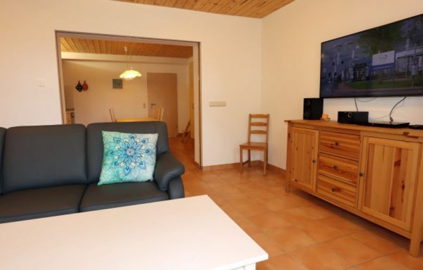 ☀️ Klein, aber oho! Diese Ferienwohnung ist das perfekte Nest für die kleine Familie mit einem Kind (+Baby), das entweder auf der Schlafcouch nächtigen kann, und/oder im Babybettchen schlummert. Günstig, aber dennoch komfortabel zeigt sich das Wohlfühlnest. Auf dem Außengelände gibt es einen Freisitz mit Grill, im Innenbereich schafft die große, gut ausgestattete Küche mit Esstisch einen Ort für das gemütliche Sonntagsfrühstück. Für Regentage ist auch gesorgt: Free WLAN, PC, Sat-TV, DVD, Playstation und eine Stereoanlage machen gute Laune. Für alle Freunde des Wäschewaschens: eine frei nutzbare Waschmaschine und ein Wäschetrockner gibt es im Nebengebäude.
