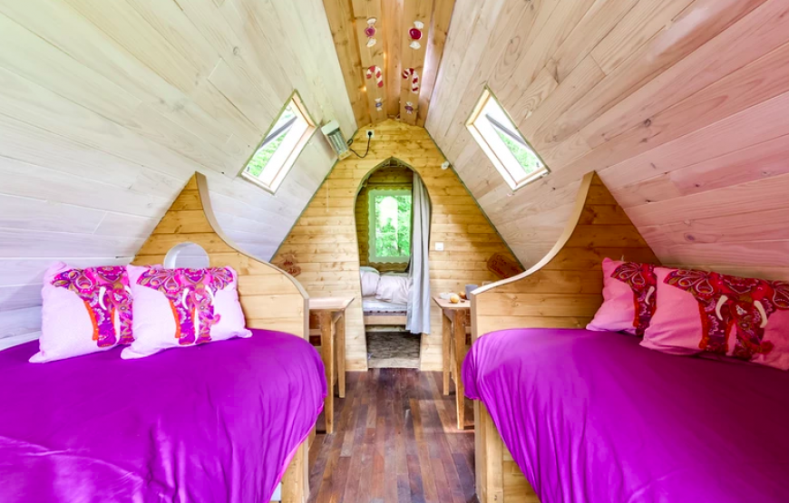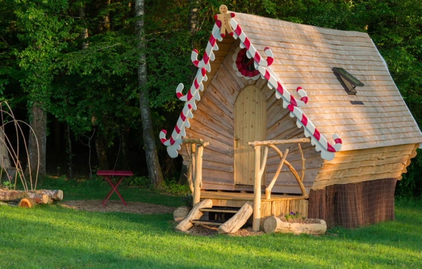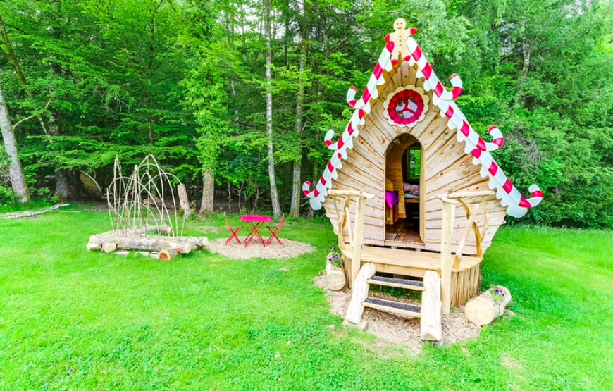 Ihr wolltet schon immer einmal in einem echten Hexenhäuschen à la Hänsel und Gretel übernachten? Dann habt ihr auf dem ökologischen, kleinen und sehr familienfreundlichen Campingplatz in den Vogesen die Möglichkeit. Neben den naturnahen Stellplätzen am Waldrand für Zelt und Camper, dem Permakulturgarten, dem Spielhaus speziell für Eltern- und Kinderspiele und den nachhaltigen Sanitärhäusern befinden sich auf der riesigen Fläche umgeben von den Vogesen auch besondere, märchenhafte Unterkünfte, die rein aus lokalen Ressourcen geschaffen wurden.