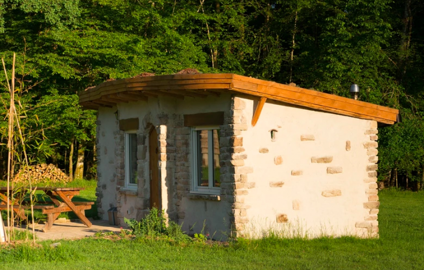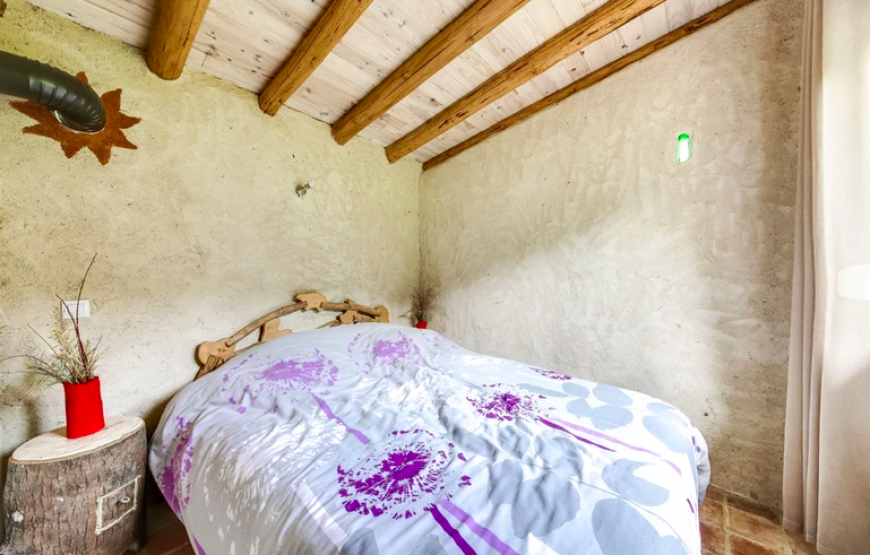 Das Haus aus Stein bietet nicht nur den größten Schutz vor dem Wolf für die Schweinchen, sondern bietet auch einer Familie zu 6. eine perfekte Kulisse für euren Urlaub in der Natur. Frei nach dem Märchen „Der Wolf und die drei kleinen Schweinchen“ entdeckt ihr auf dem ökologischen, kleinen und sehr familienfreundlichen Campingplatz in den Vogesen ein Märchenland zum Anfassen. Neben den naturnahen Stellplätzen am Waldrand für Zelt und Camper, dem Permakulturgarten mit Bio-Gemüse, dem Spielhaus speziell für Eltern- und Kinderspiele und den nachhaltigen Sanitärhäusern befinden sich auf der riesigen Fläche auch besondere Unterkünfte, die rein aus lokalen Ressourcen geschaffen wurden.